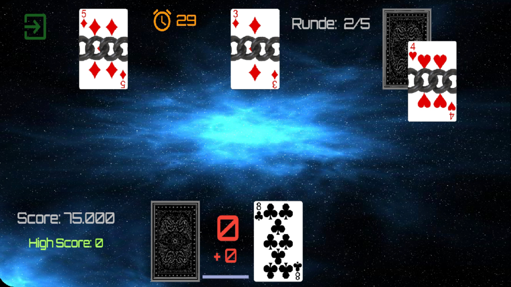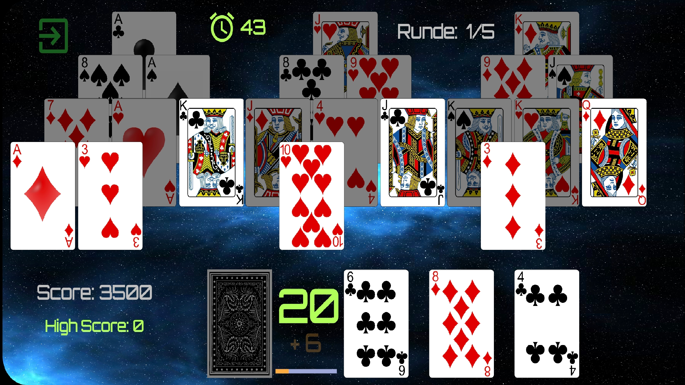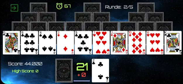 A card can only be played correctly if it is the next higher or next lower card to the base card. If no card can be played, a new basic card can be opened by clicking on the playing card deck.